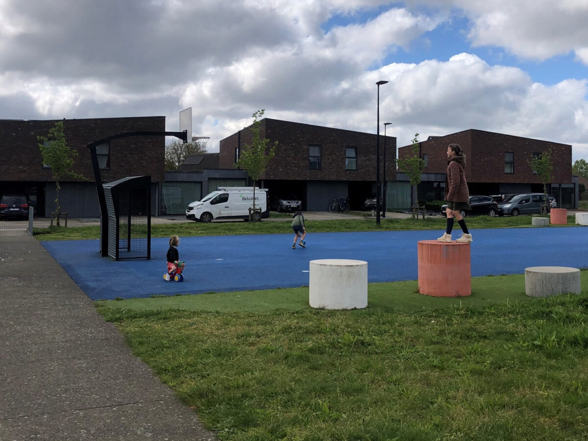De speelzone, natuurwaarde, zitplekken en de integratie van een open buffer- en infiltratiebekken (wadi) zorgen voor een multifunctionele invulling van de groene ruimte. Verlichting en wandelpaden bevorderen de veiligheid en het gebruik op elk moment van de dag.